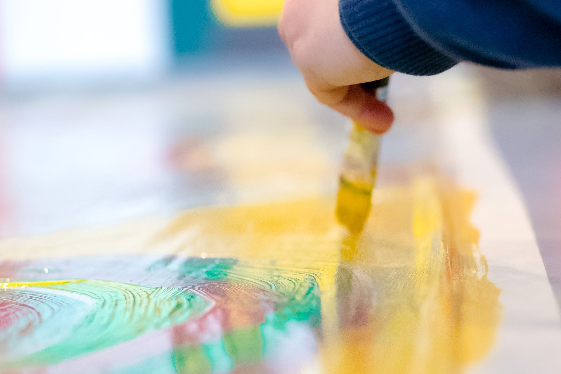 Es darf ausprobiert werden! Begleiten Sie Ihr Kind in kreative Prozesse mit allen Sinnen. Über Farberlebnisse an großflächigen Malwän...