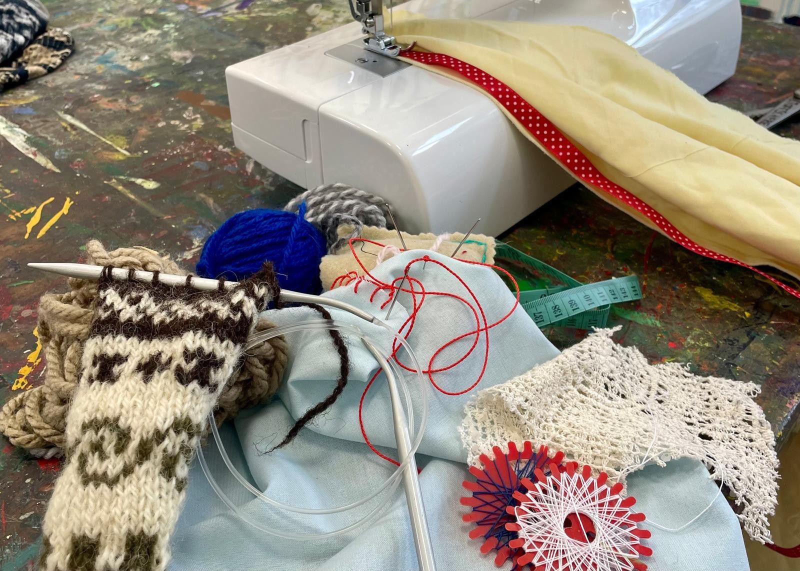 Bring deine unfertigen Handarbeiten (UFOs) mit oder gib sie in der Kunstschule ab.